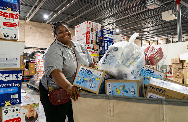 Share Our Spare — one of many organizations receiving grant funding from BCBSIL’s Special Beginnings initiative — collects diapers and other baby supplies for nonprofits supporting postpartum women and their families.